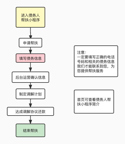 中国法律援助基金会“消费信贷纠纷法律帮助专项基金”为债务人推出债务人帮扶小程序,由平台实施机构成都律军风险管理股份有限公司“律鲸-案多多”系统提供服务。基金会志愿者免费帮助善意失信的债务人与欠款机构进行沟通,努力促成罚息免除、利息减免、延期偿还债务等调解协议,平稳化解消费信贷纠纷,缓解债务人的欠债压力,修复个人信用,助推经济社会健康发展。